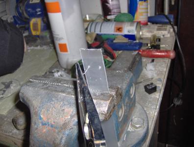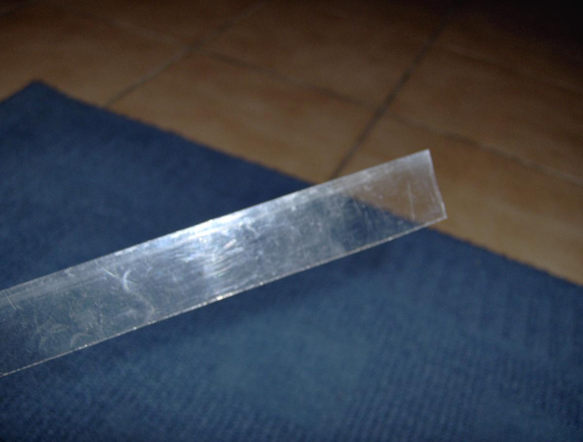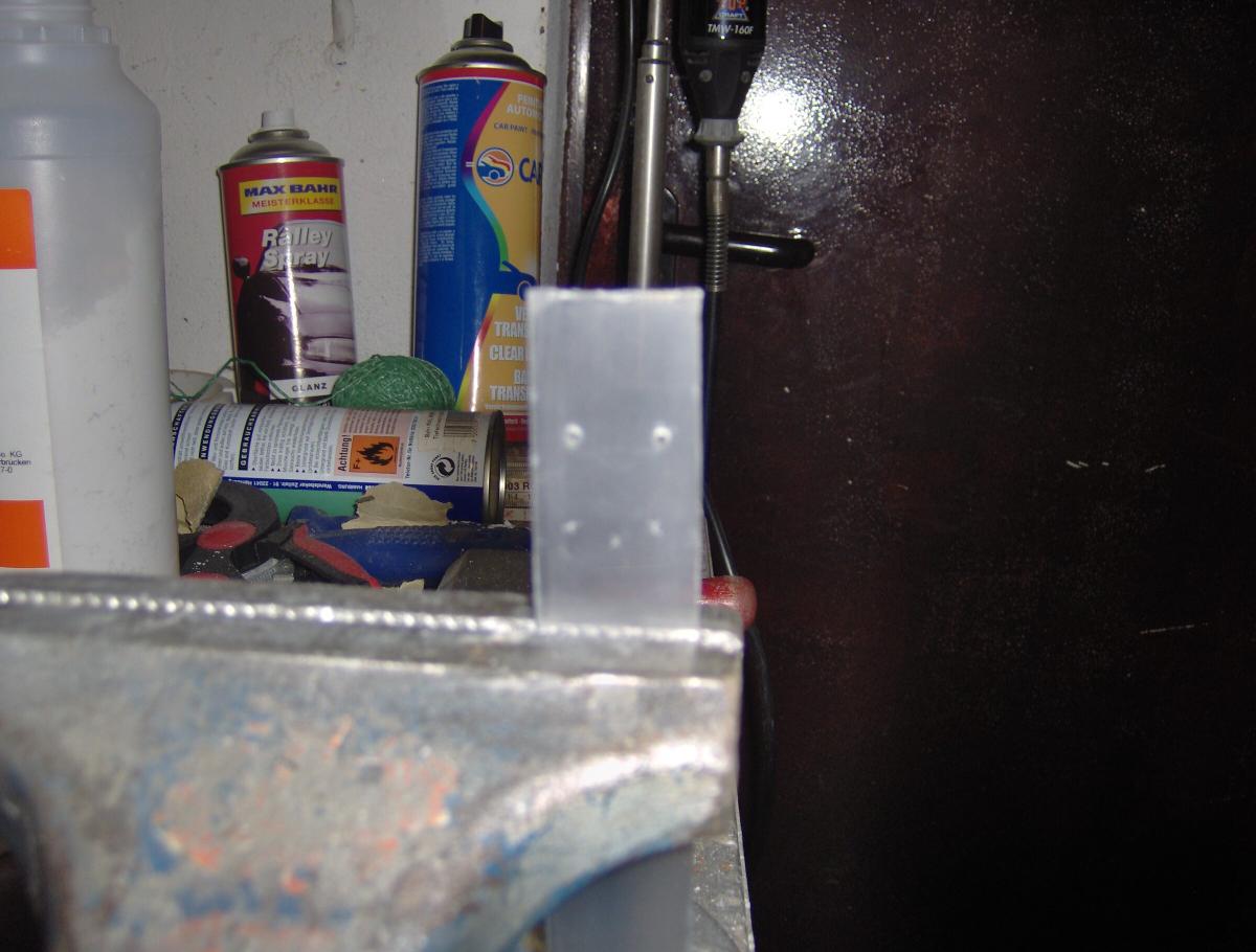 Hier sieht man wie ich einen erhitzen Draht durch das Plexiglas gedrückt hab. Den Draht (von einer Büroklammer) kann man sehr gut mit einem kleinen Gasbrenner erhitzen.