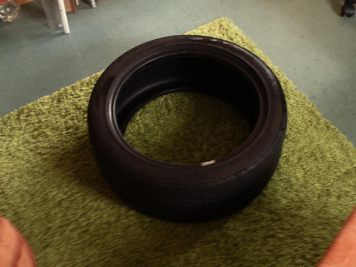 Nach unzähligen Gedankengängen sollte nun ein alter Auto-Reifen dran glauben müssen.