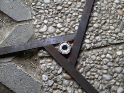 Die Kugellager sollten von jeweils zwei optisch ansprechenden Konstruktionen, aus im Dreieck angeordneten Stahlstangen, getragen werden.