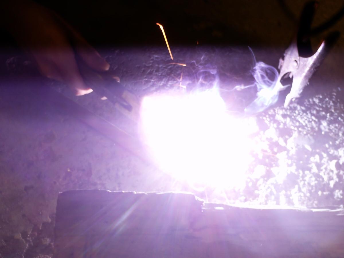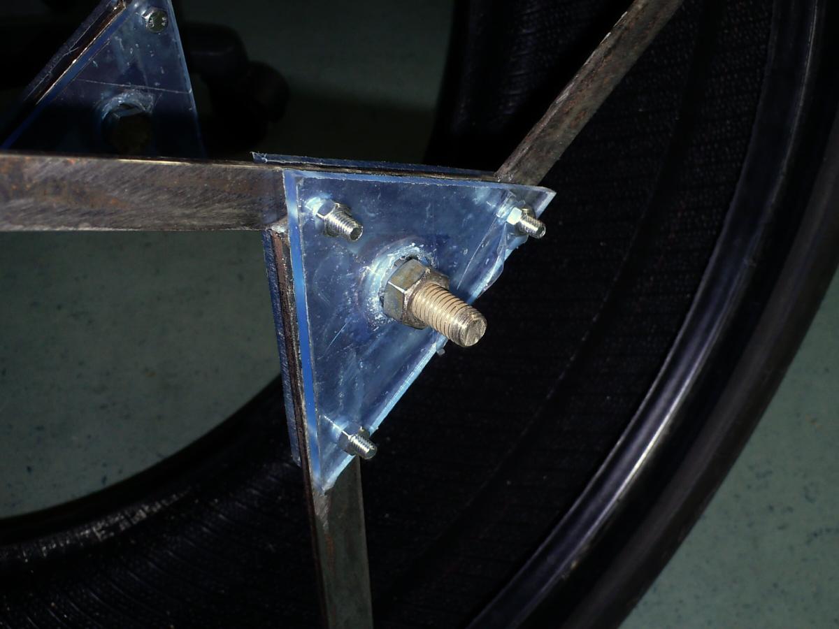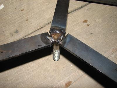 Im Mittelpunkt ist die Gewindeschraube festgeschweißt. Die Schweißnähte wurden selbstverständlich noch schöngeflext
