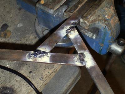 Nun fehlt noch das Gestänge auf der Vorderseite. Dazu hab ich drei Stahlstangen wie auch zuvor an eine Gewindeschraube geschweißt.