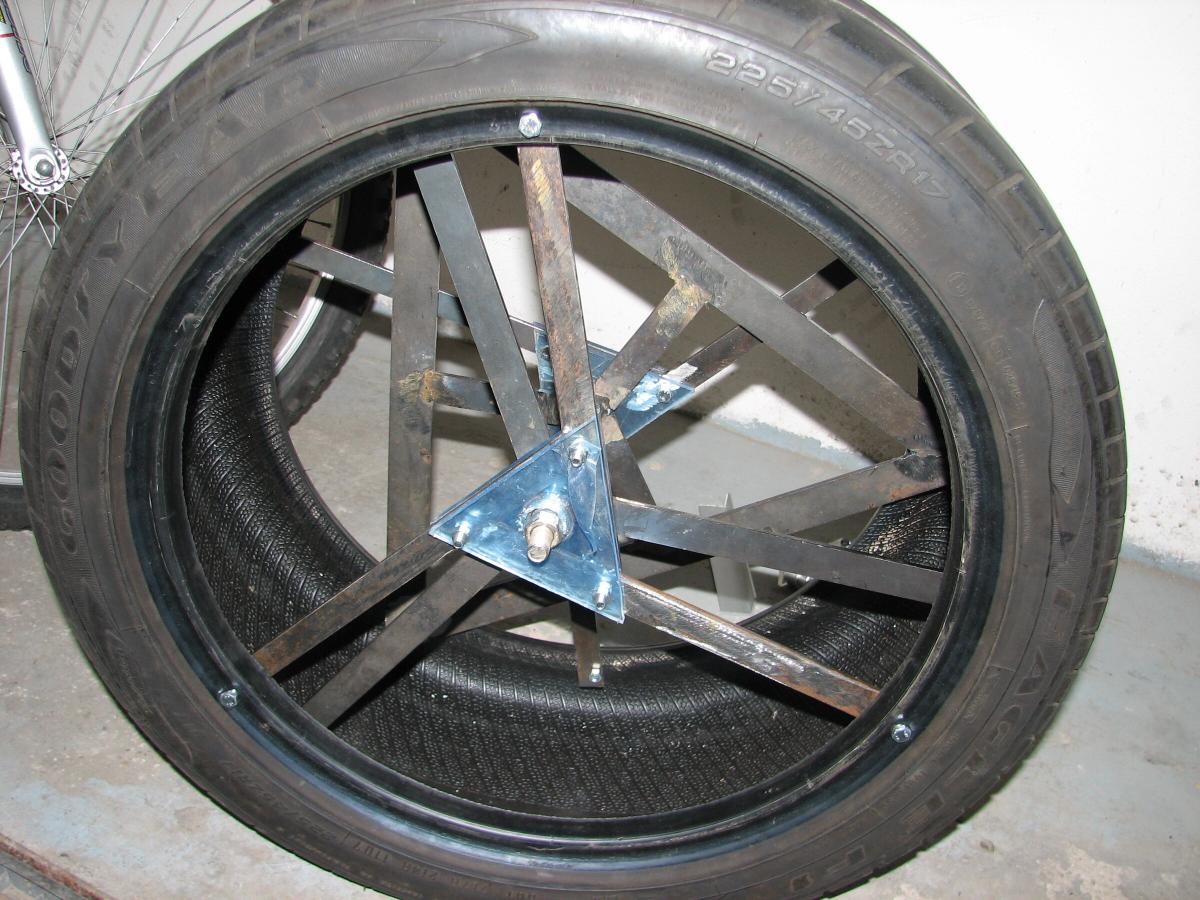 Die PC-Komponenten wie Mainboard, Festplatte, Netzteil etc. sollen nicht fest im Reifen angebracht werden, währe auch zu langweilig, sondern sich unabhängig von ihm im inneren drehen.