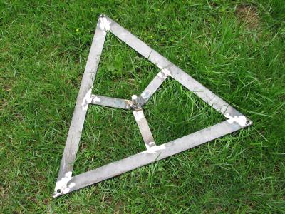 Die beiden Plexiglasdreiecke werden von drei Gewindeschrauben an den Ecken zusammengehalten.