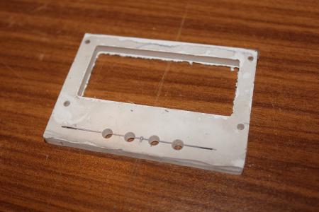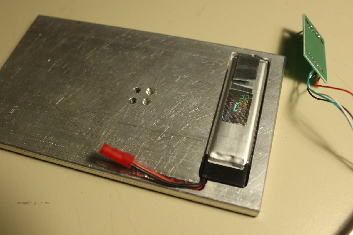 Als Basis für den Neubau diente eine mäßig dicke Aluminiumplatte. Ein nicht mehr ganz so frischer 600mAh 1S Lipo soll darin eingelassen werden. Mit der Fräse und einem 3mm Zweischneider hab ich die Tasche Stück für Stück ausgefräst.