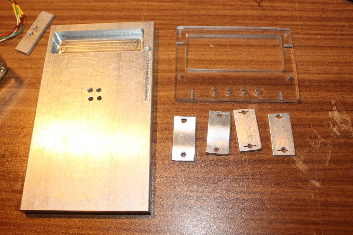 Die Load-Cell aus der Ursprünglichen Waage wird im oberen Bereich über dem Akku befestigt. Das Display soll dann auf ca. gleicher Höhe im vorderen Bereich angebracht werden. Vier kurze Stücke aus Aluminium Flachprofil werden dazu Seitlich an das Acryl und die Baseplate geschraubt.