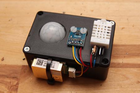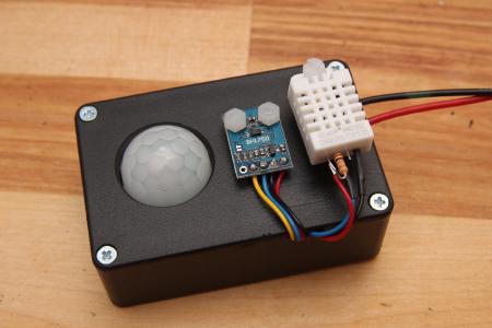 Hier ein kleineres Gerät mit BH1750 Luxmeter, AM2302 und Bewegungssensor.