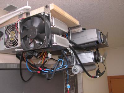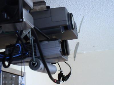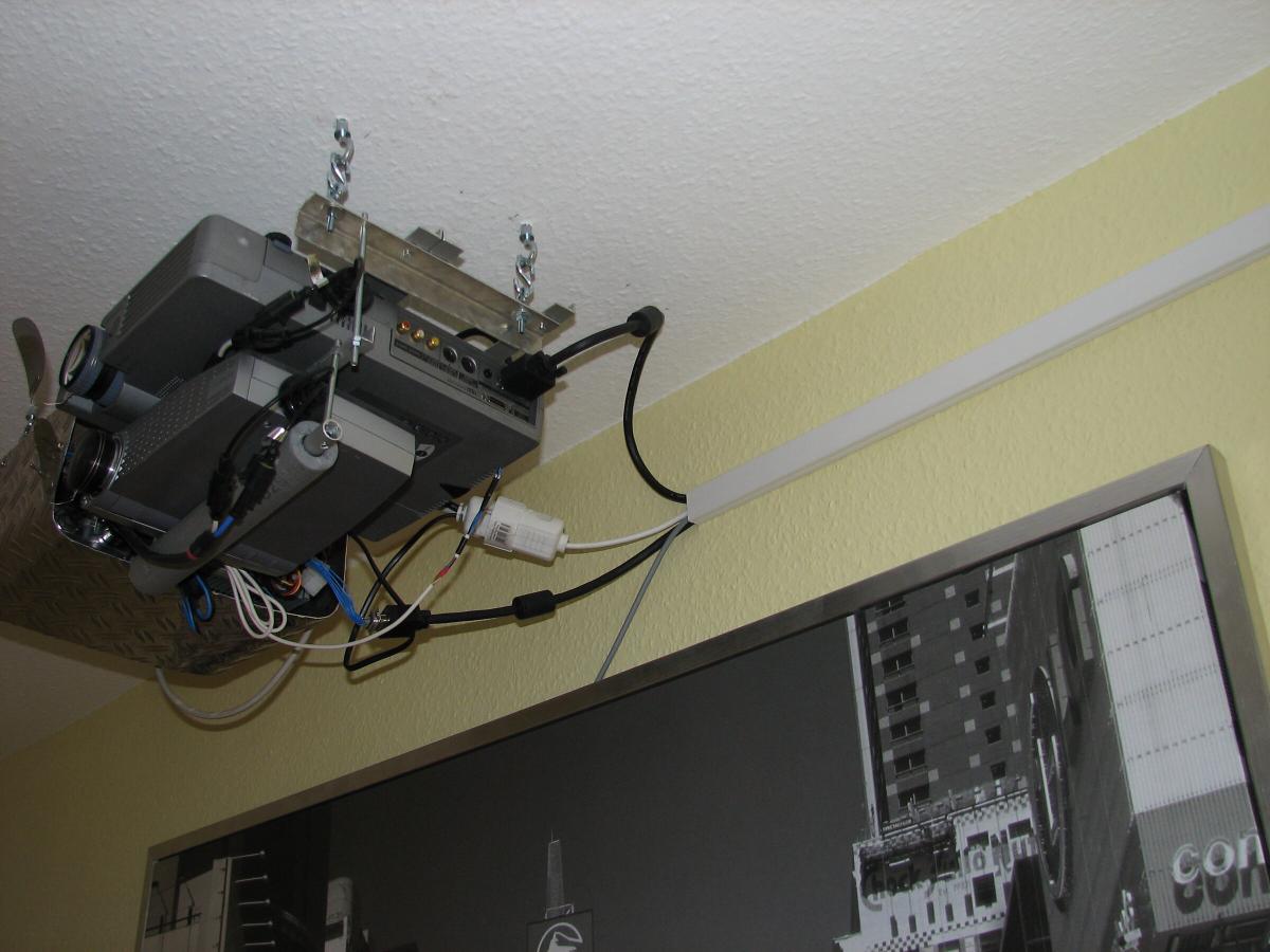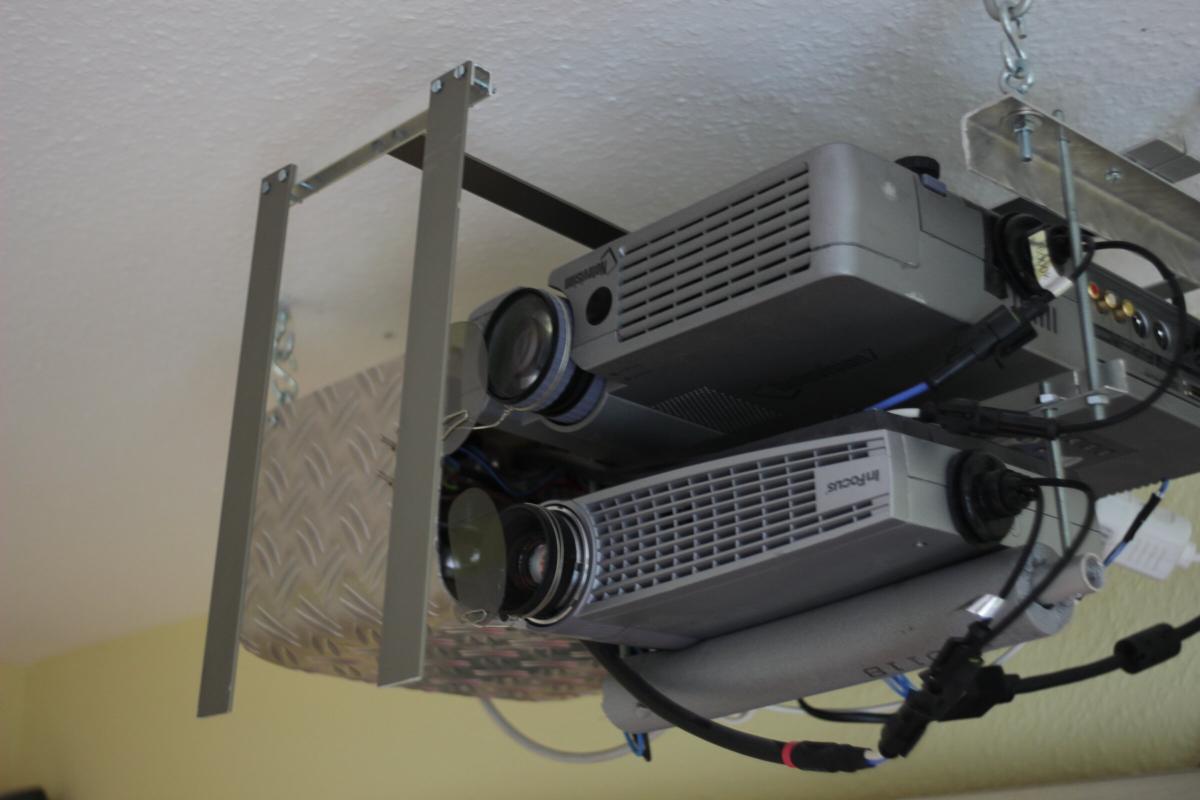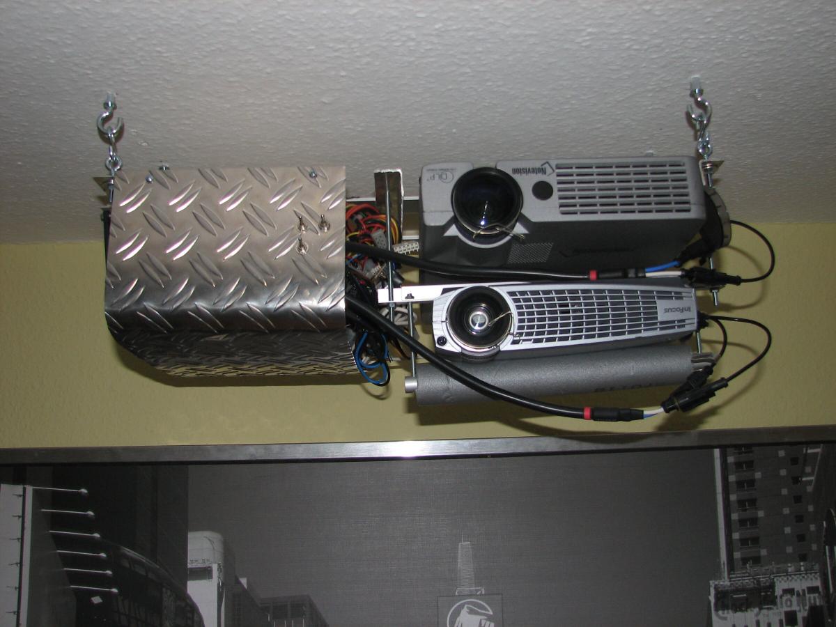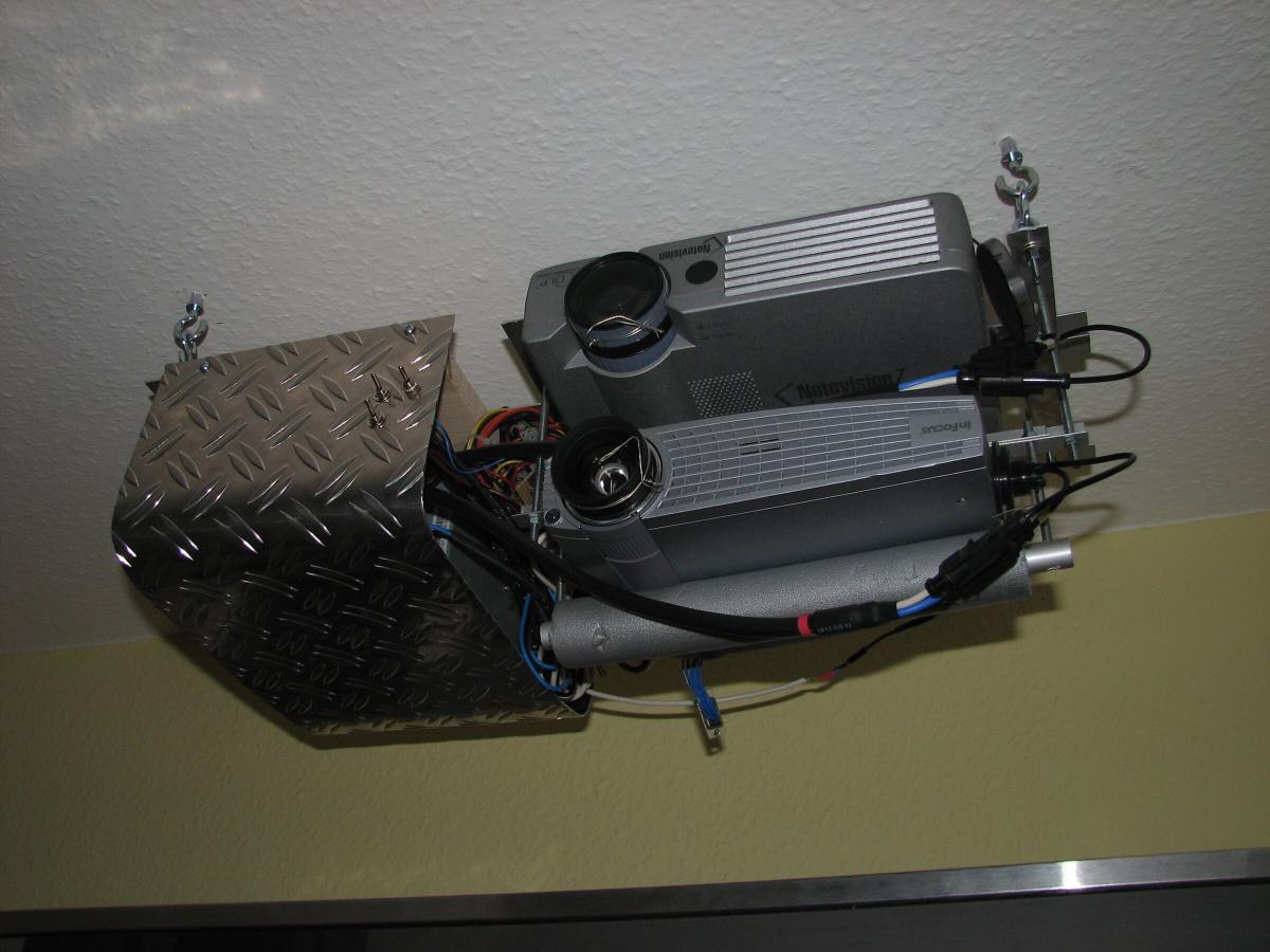 Hier die beiden untereinander befestigten Beamer.