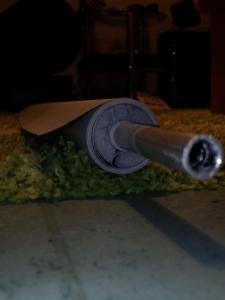 Damit die Leinwand auch an dem Rohr hält, hab ich sie ein paar mal um das Alurohr (mit einem Durchmesser von 15mm) gewickelt. Darüber dann die Rohrisolierung, damit der Stoff nicht zu eng aufgeollt wird.