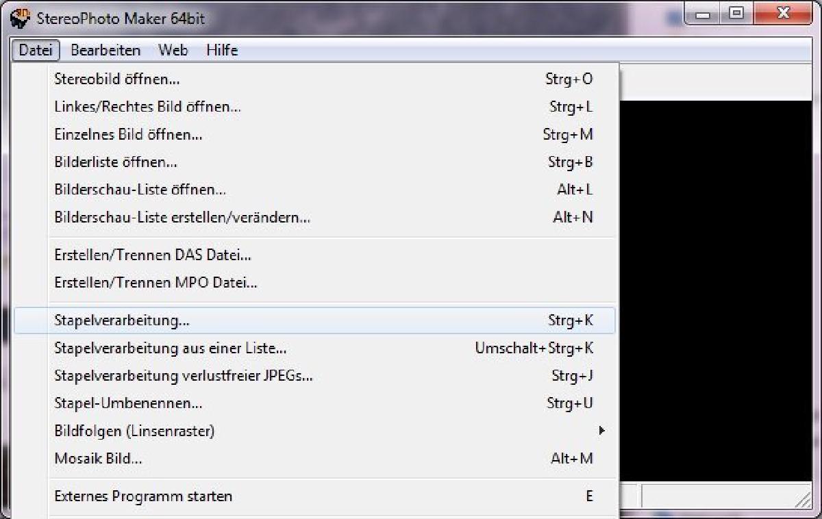 Nun geht es an die Stapelverarbeitung, hierzu im SPM unter Datei das Fenster für die Stapelverarbeitung öffnen (oder Strg+K).