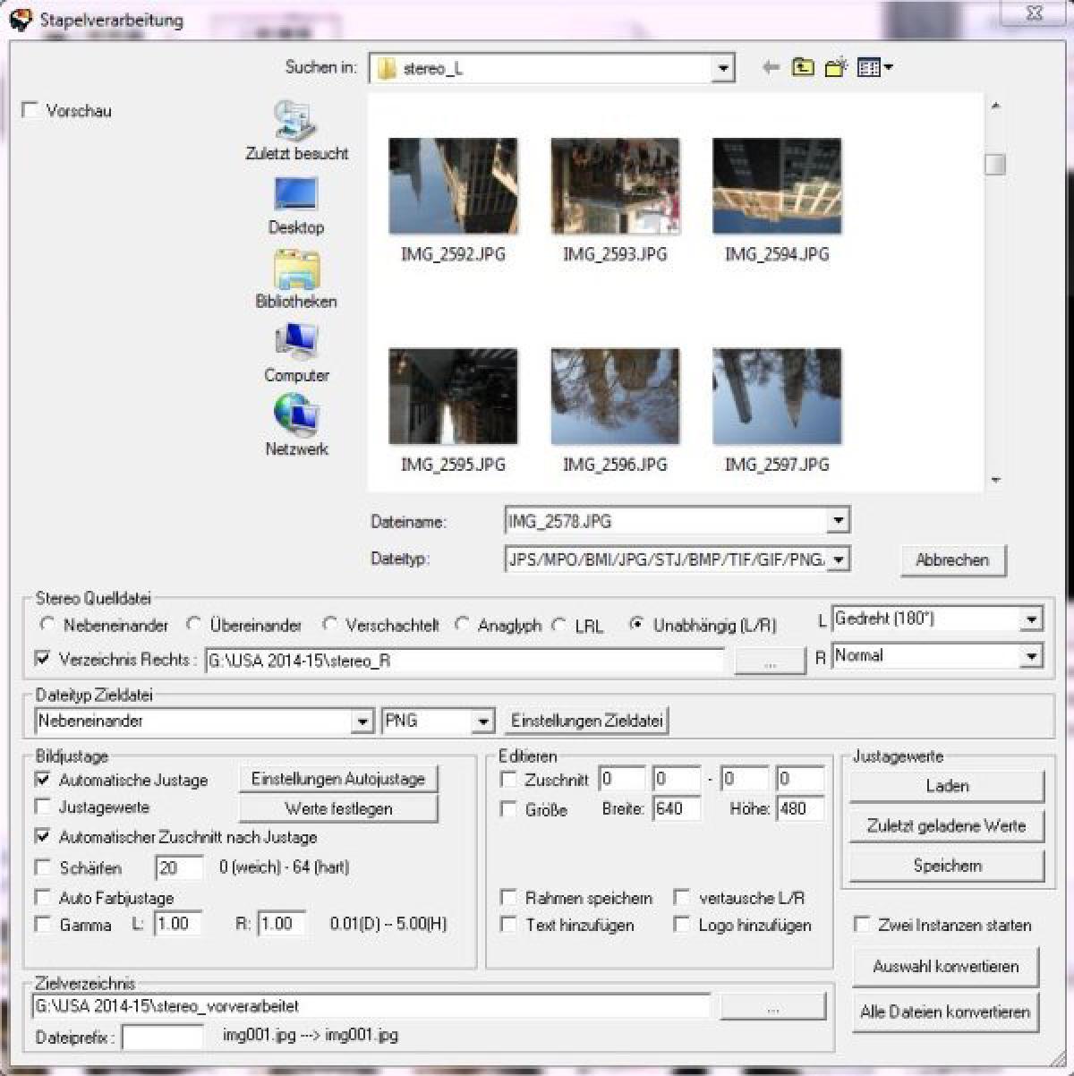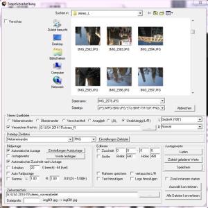 Als vorletztes sollte nicht vergessen werden, das Zielverzeichnis anzugeben. Ganz unten also einen leeren Ordner angeben, in den die Bilder temporär gespeichert werden sollen (hier stereo_vorverarbeitet).