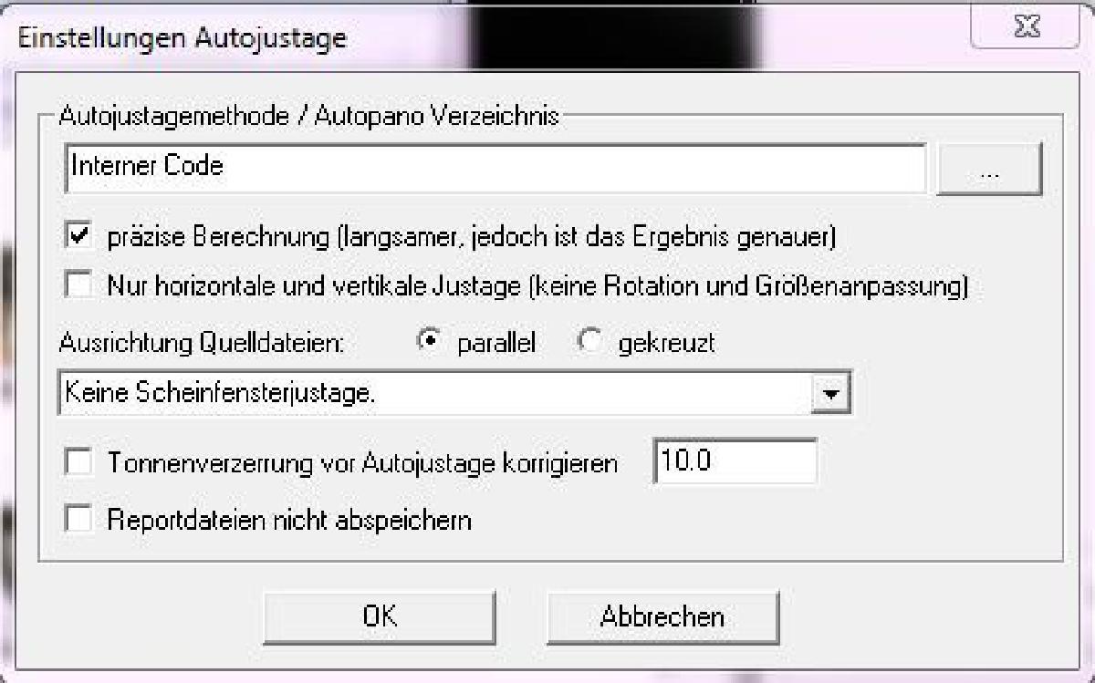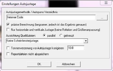 Da wir die Bilder Ausrichten wollen muss noch die “Automatische Justage” selektiert werden. Zu den Einstellungen zur Autojustage komme ich sofort.