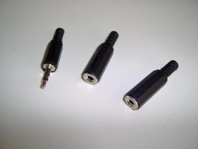 Ein Klinkenstecker und zwei Klinkenbuchsen: