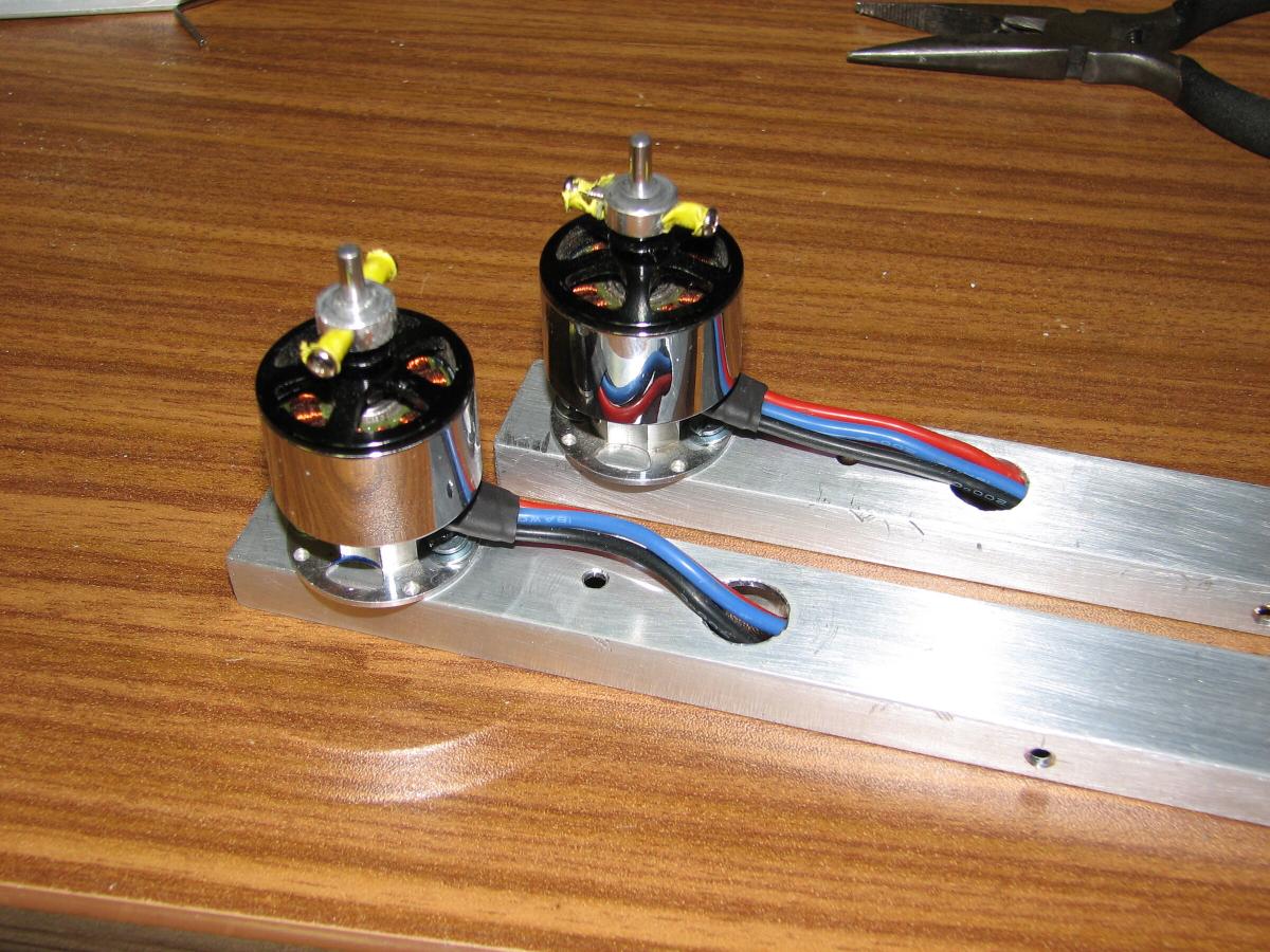 Die Motorhalter werden ebenfalls wie vorher mit zwei Gewindeschrauben am Ende des Arms angeschraubt.