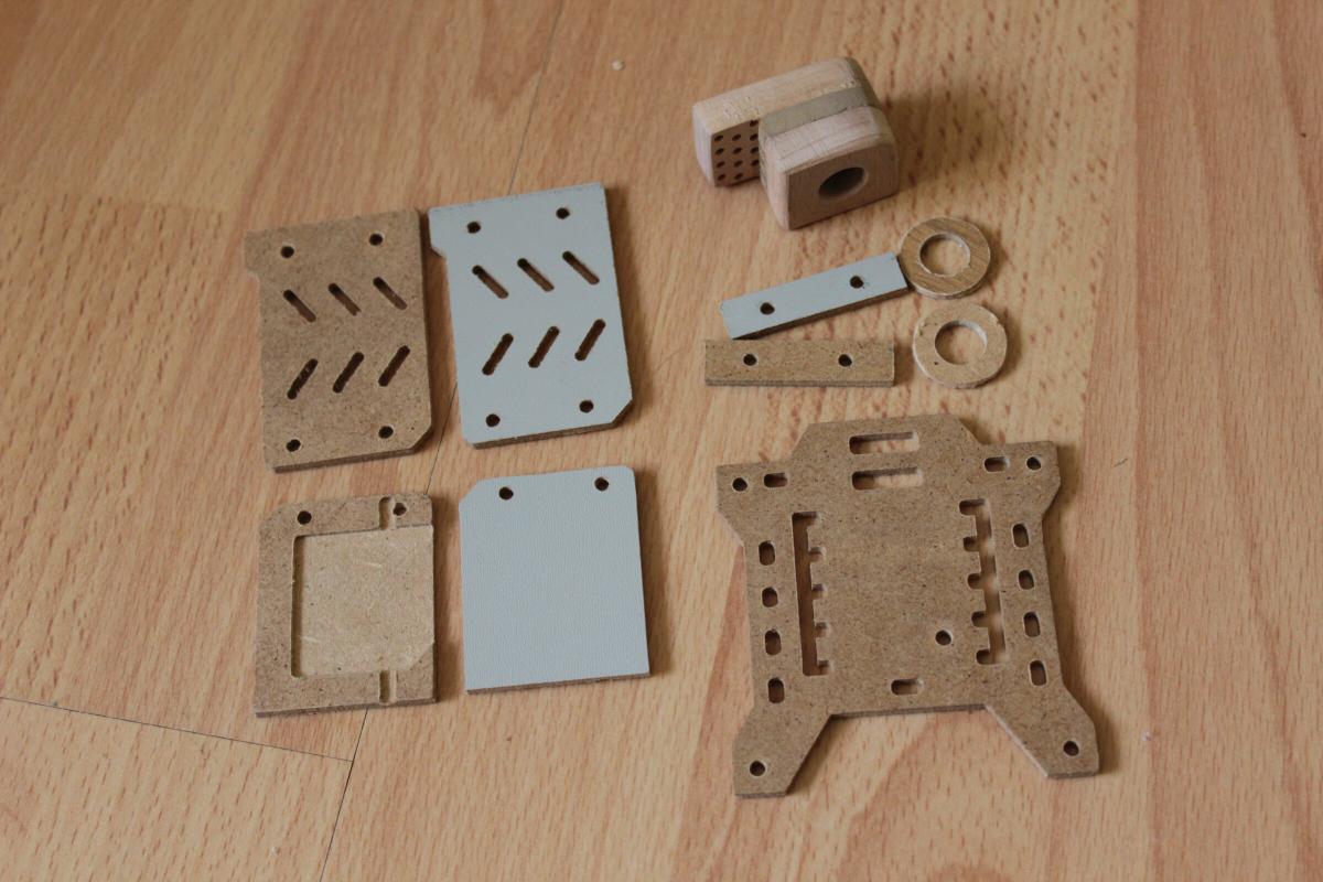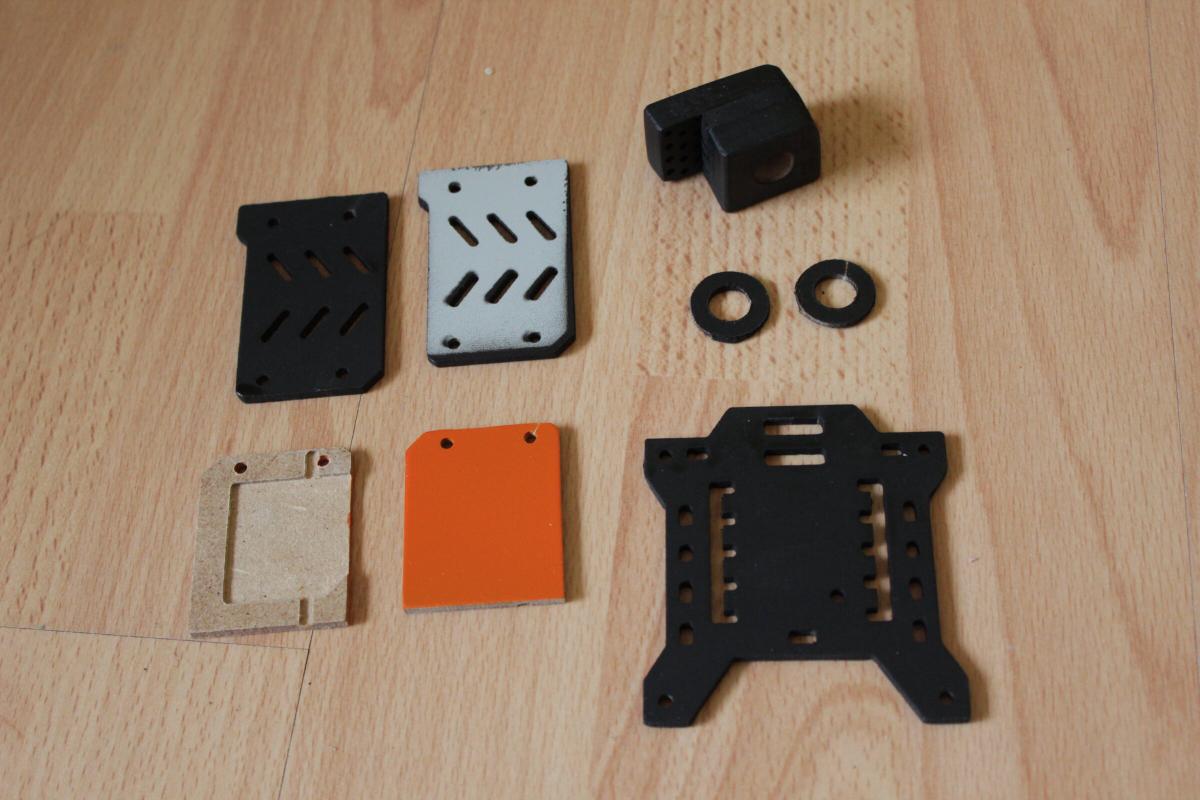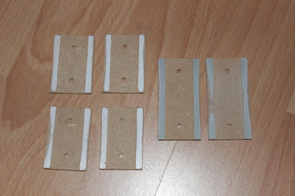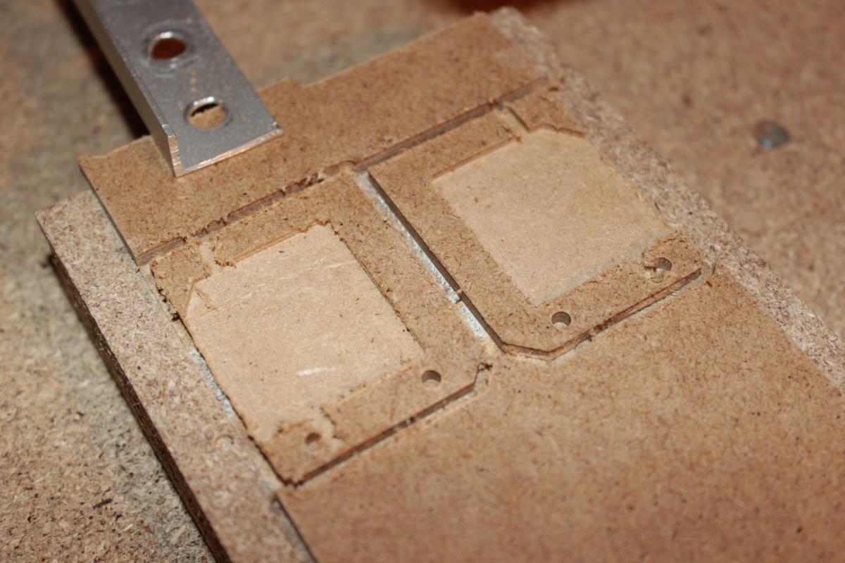 Um die Aluarme nicht direkt an den Centerplates anschrauben zu müssen hab ich insgesamt sechs kleine Plättchen aus Hartfaser (jaja schonwieder, aber es lässt sich so gut verarbeiten) gefräst.