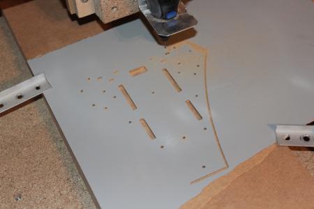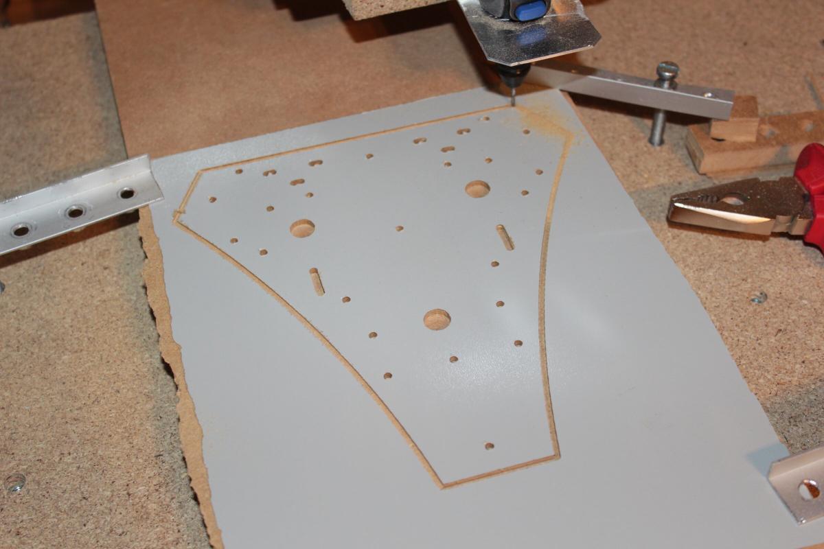 Bevor ich die Centerplate aus dem vergleichsweise teuren GFK fräse wollte ich sie zuvor aus einer Hartfaserplatte Probefräsen.