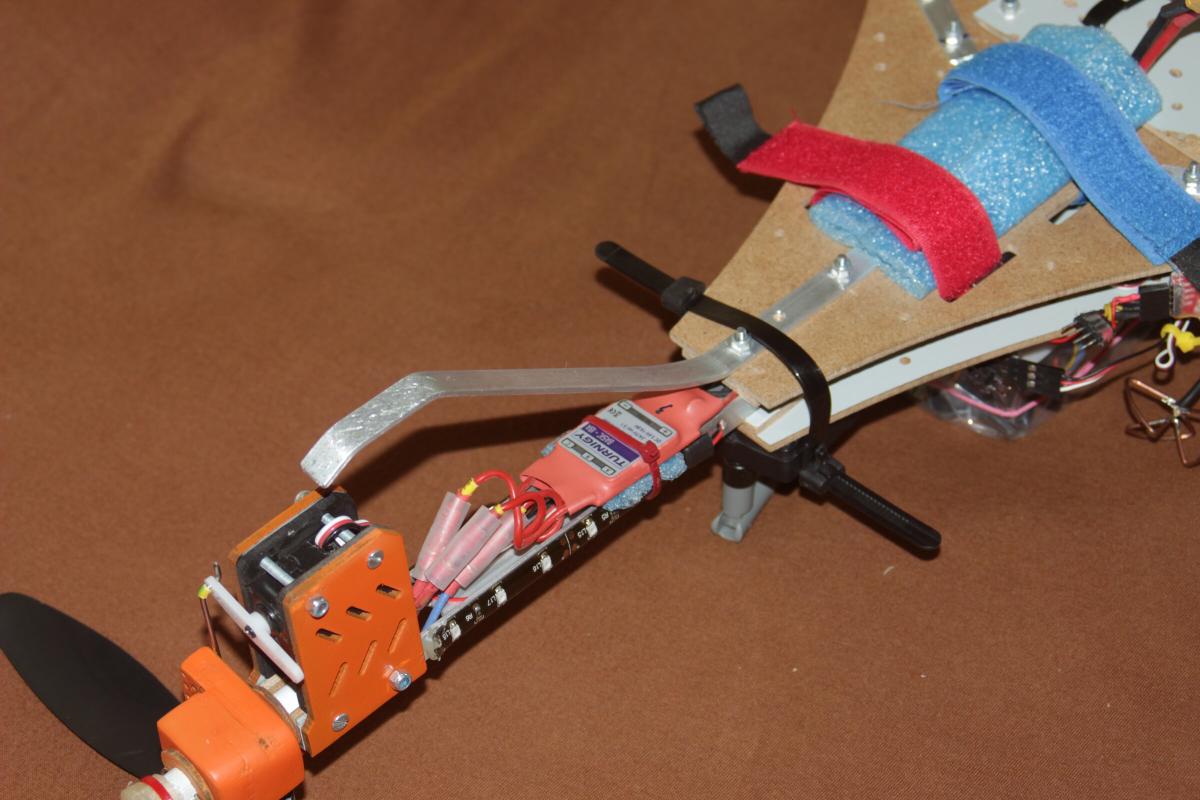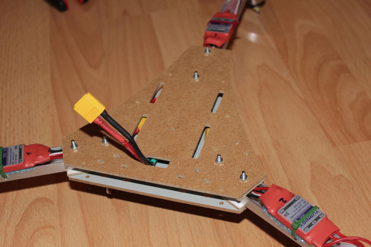 Bei den Armen hat sich zu vorher eigendlich nicht viel getan. Der Abstand Mittelpunk - Motor ist auf 30cm geschrumpft und die ESC’s werden unterhalb der Arme befestigt.