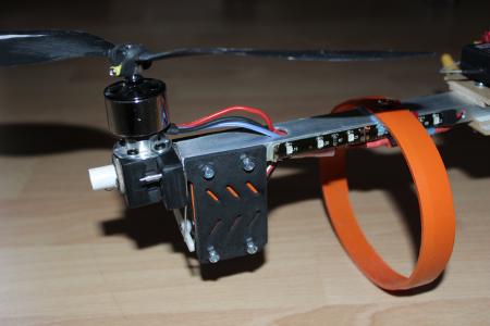 Im Gegensatz zu den vorderen Motoren muss der Hintere neigbar sein. Die Yaw-Mechanik war für mich eines der schwierigeren Teile beim entwerfen des Copters.