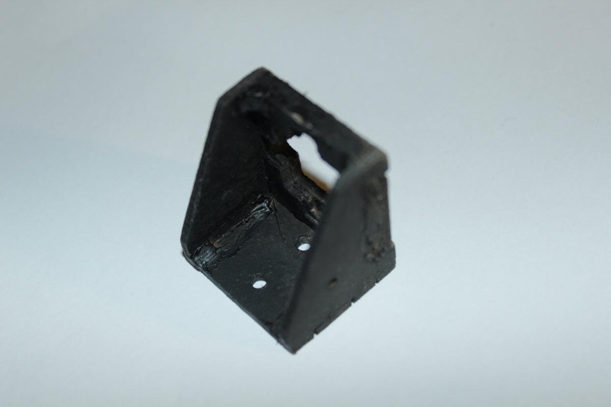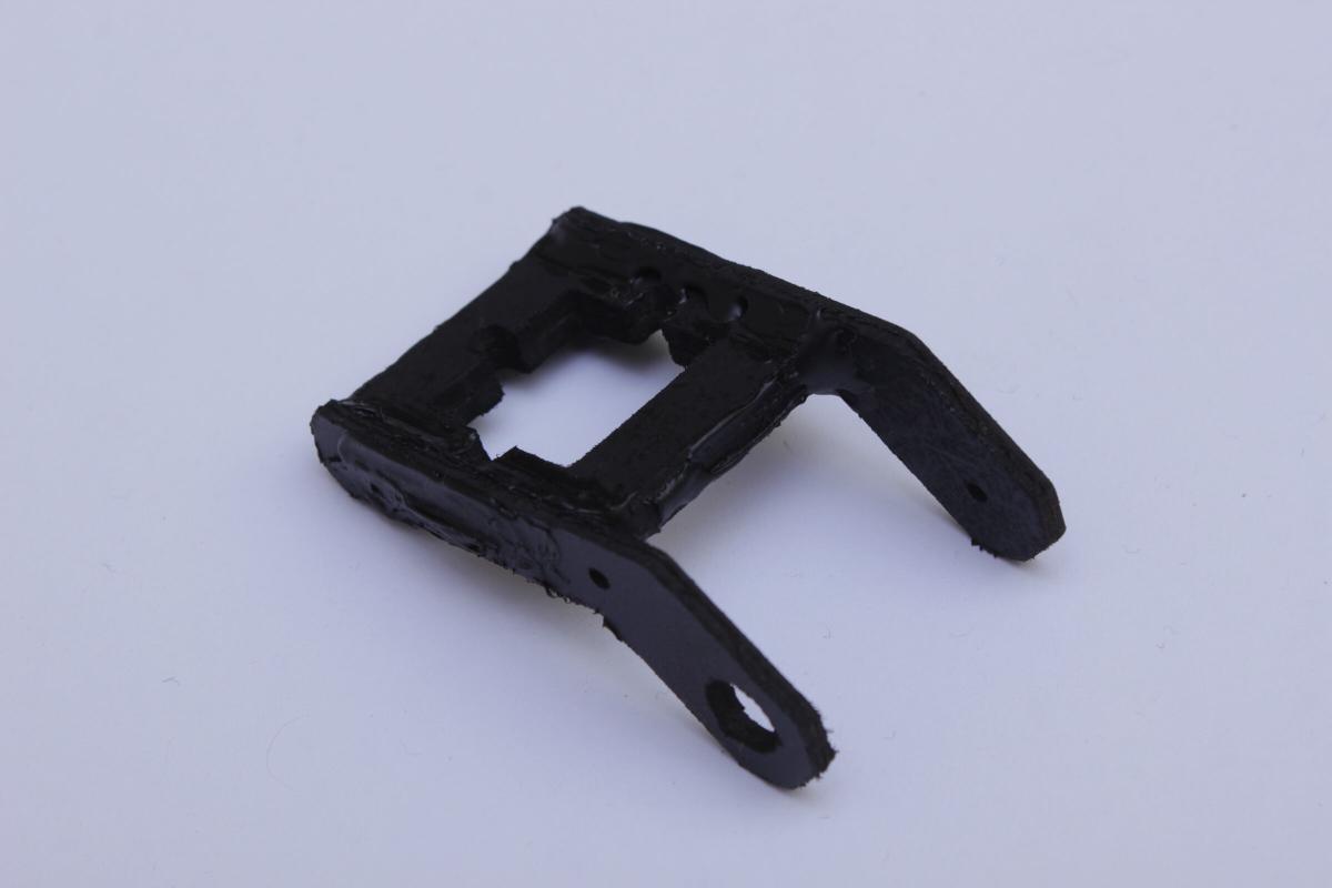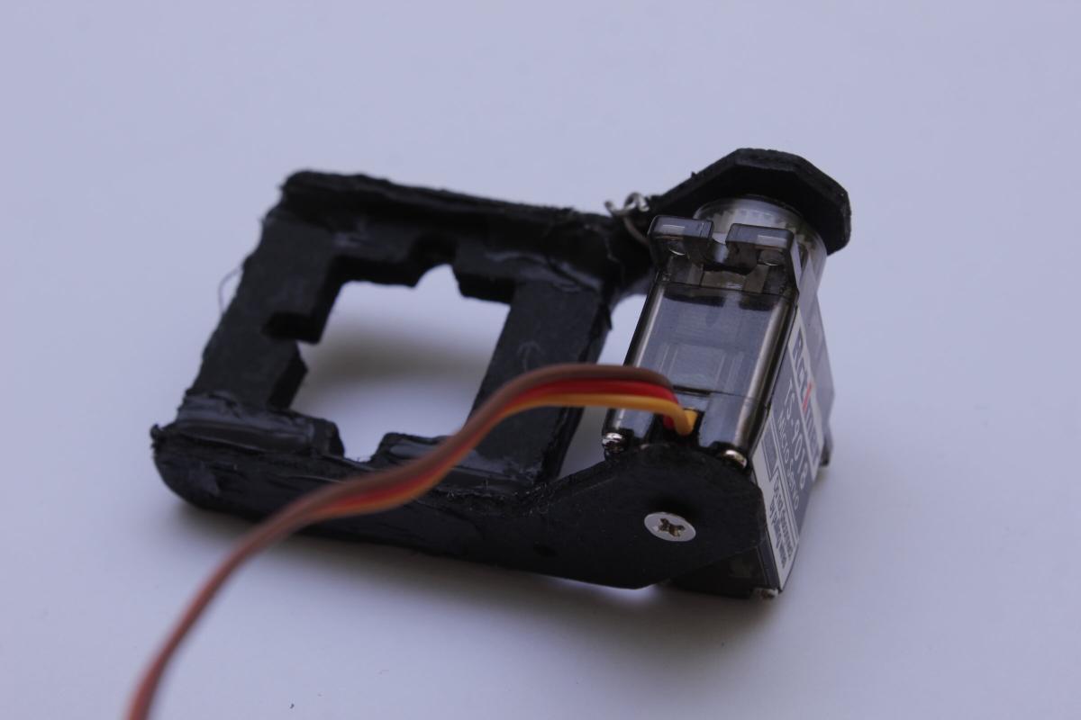 Nachdem die Teile mit Heissklebe zusammengeklebt und schwarz angesprüht wurden konnte der Servo dazwischengesteckt und angeschraubt werden.