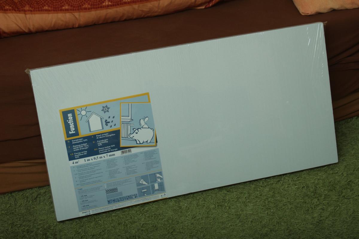 Neben dem 7mm dicken Saarpor hab ich 2cm dickes Domodur (son Pinkes Dämmzeug ausm Baumarkt) verwendet. 0,75qm - 4,50€