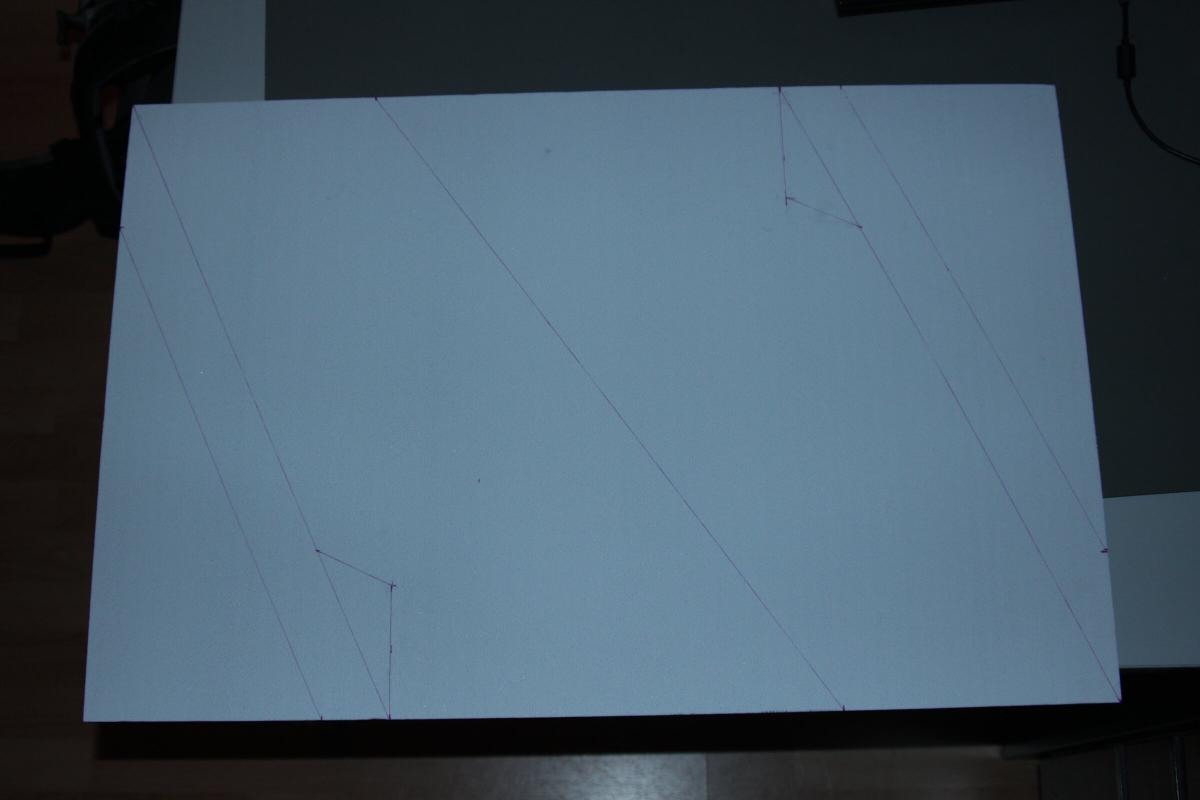 Aus dem Saarpor hab ich ein 20" x 30" Stück ausgeschnitten und die Linien der Anleitung nach eingezeichnet und ausgeschnitten.