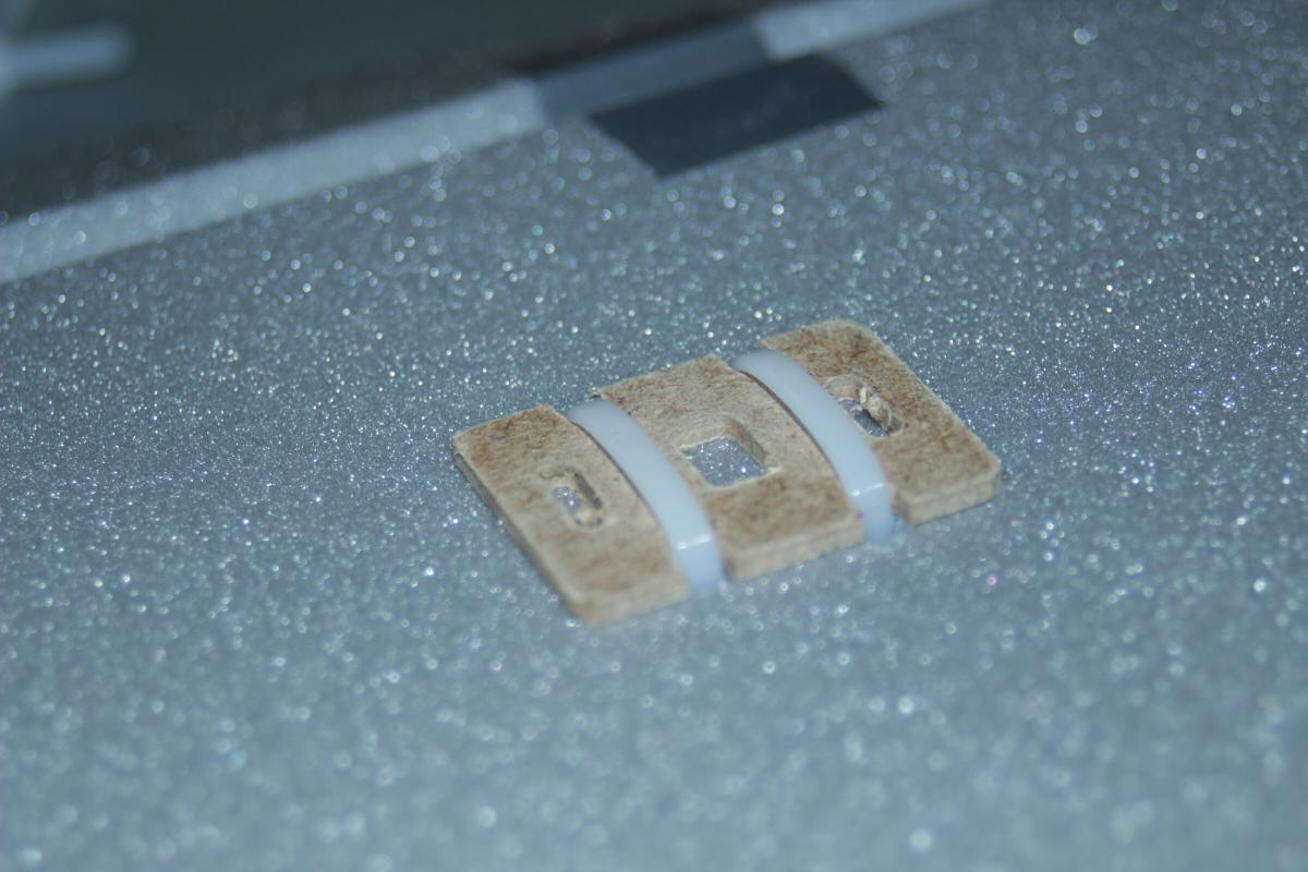 Um dem Ganzen noch etwas mehr Steifigkeit zu verleihen hab ich zwei Holzstäbe in das Domodur eingelassen. Die Kabelbinder drücken die Holzstäbe und die 4 kleinen Holzplatten auf der Unterseite zusammen und halten somit das Domodur und den Rest des Wings zusammen.