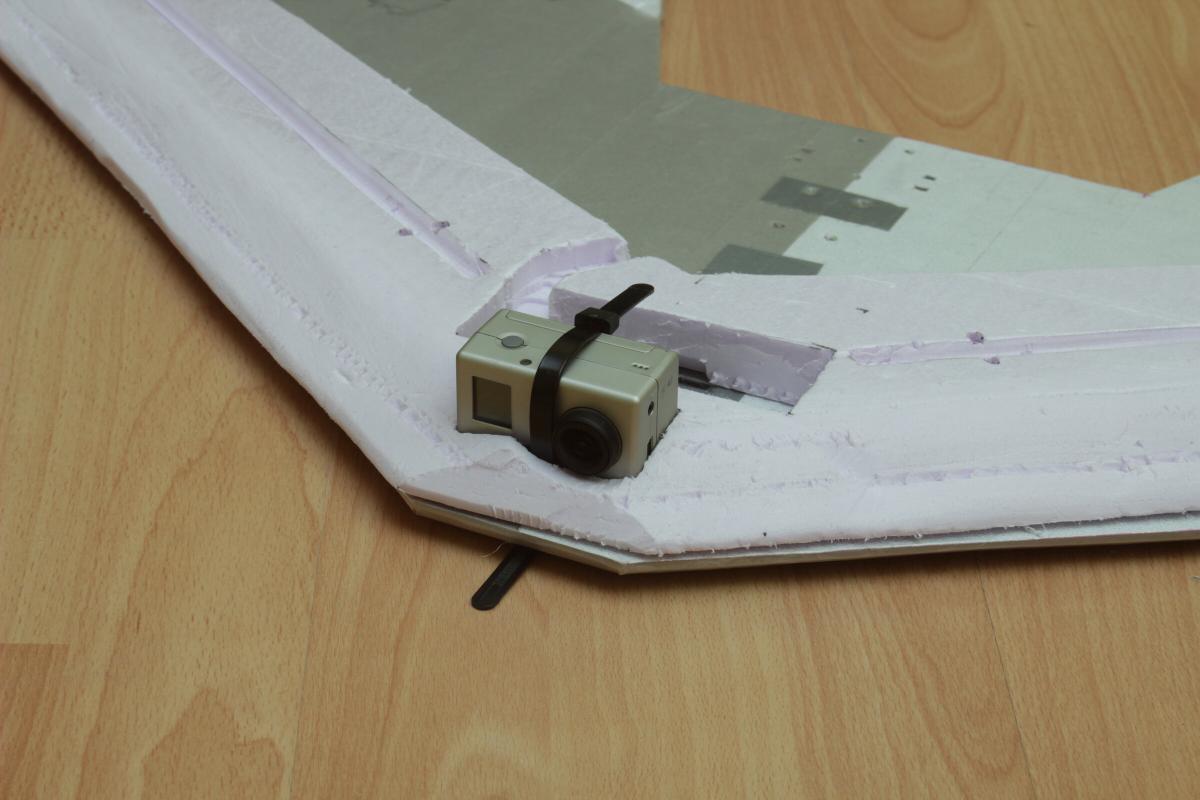 Vor dem Lipo kommt ebenso eingelassen die Gopro 2.