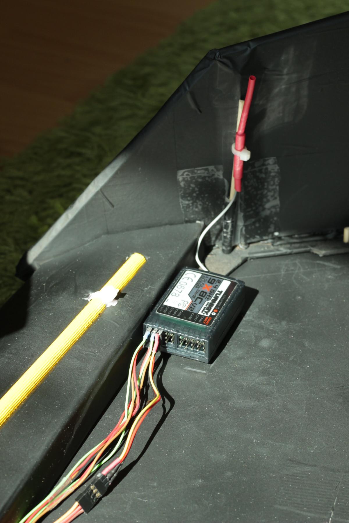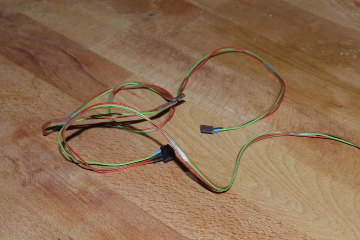 Da in Zukunft ein Videosender dazukommen könnte wollte ich den Empfänger schonmal so weit außen anbringen wie möglich. Dazu musste ich die Servokabel etwas verlängern.