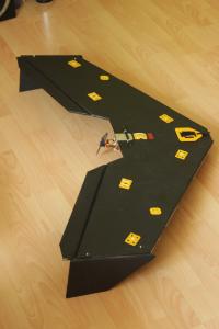 Daher wiedereinmal aus MDF ein Teil gefräst um die Winglets seitlich in den Wing zu stecken. Mit von oben durchgesteckten Schaschlickspießen fallen die dann auch nicht im Flug ab (glaube ich).